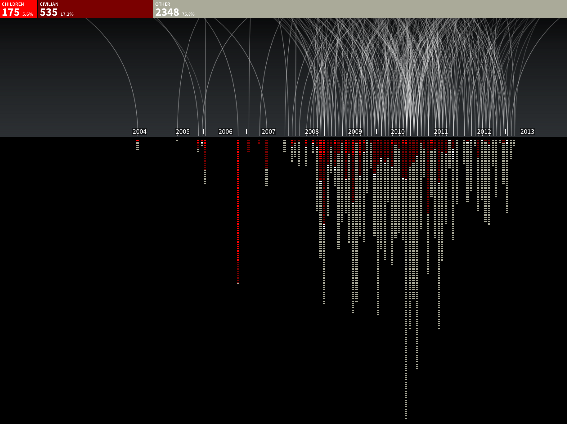 Ante el estremecimiento general por los últimos atentados suicidas de grupos talibanes en Pakistán, que se cobraron hoy la vida de 69 personas –la peor acción desde que se asaltara en 2014 una escuela de Penshawar en la que se mataron 125 estudiantes–, facilitamos la estadística de asesinados por ataques de drones norteamericanos entre 2004 y 2015: 3341 personas, de las cuales 190 son niños.