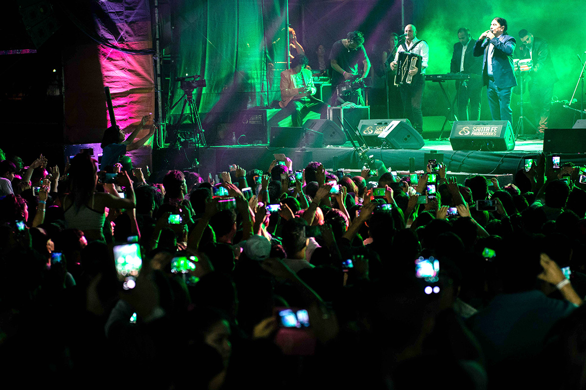 Trompetas y trombones haciendo “Por primera vez”, una flauta traversa haciendo la intro de “Cumbia sobre el mar”, violines fraseando “Aprenderás a llorar”. Fa. Mucho distraído se dio cuenta de que conocía todas las canciones a partir de estos conciertos sinfónicos, era uno que nos debíamos, que ya sabíamos imaginar porque las canciones de Los Palmeras son instituciones, anteriores a nuestros nacimientos, posteriores a nuestras muertes.