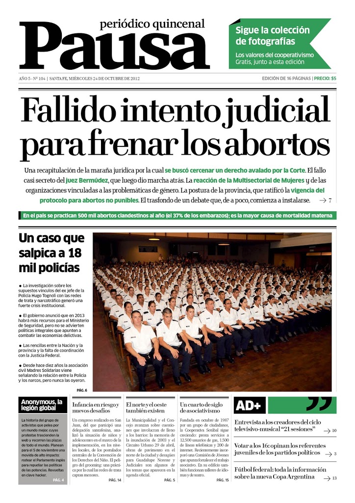 encontrar en los kioscos de Santa Fe y Santo Tomé la edición #104 de Pausa, el