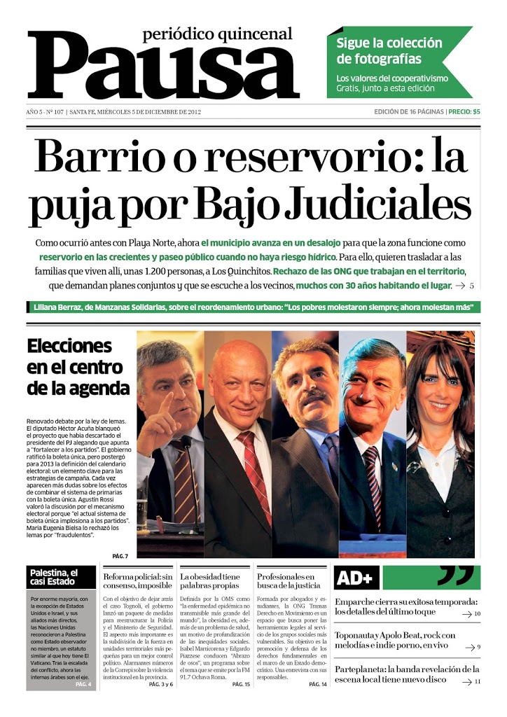 #107 de Pausa, el periódico quincenal de Santa Fe. En este número la nota de