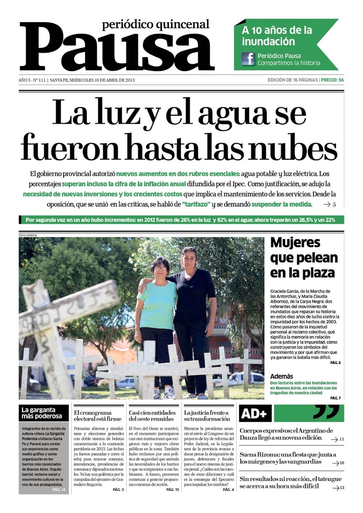 la edición 111 de Pausa, el periódico quincenal de Santa Fe.