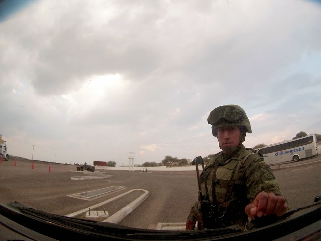 Uno de los soldaditos se asoma por el parabrisas, pero pega