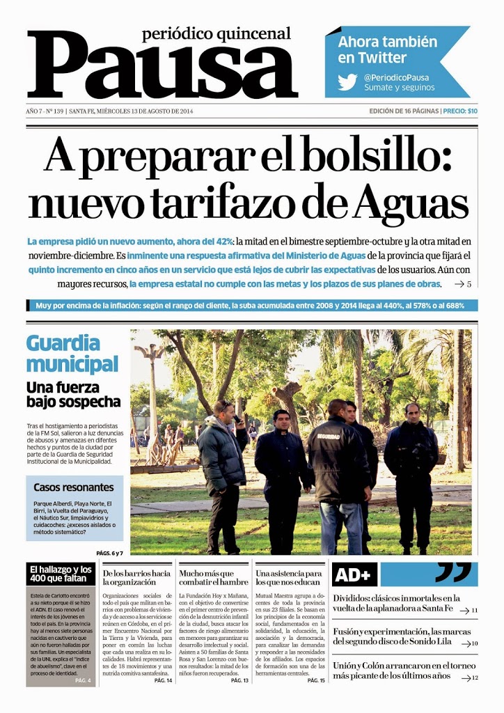 miércoles 13 de agosto de 2014. Pedí tu ejemplar en estos kioscos de Santa Fe y