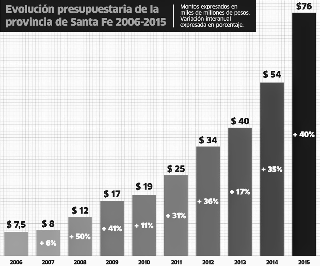 Estado provincial: de 4.307 pesos por habitante en 2008 pasó a 14.576 pesos por