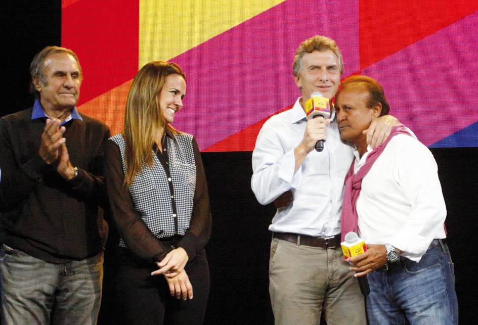 Miguel Del Sel festejó en Rosario junto a Mauricio Macri, Carlos Reutemann y Anita Martínez.