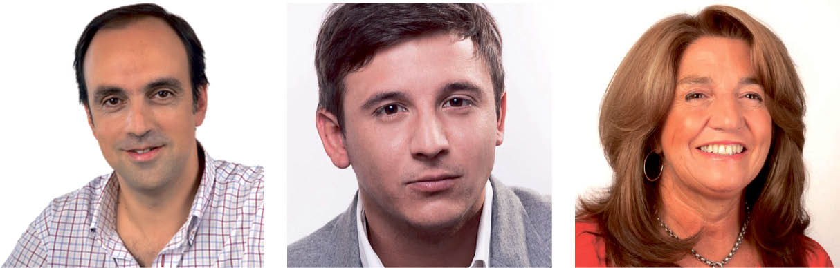 Foto carnet de quienes están arriba: José Corral por el Frente Progresista, Sebastián Pignata por el PRO y Silvina Frana del Frente Justicialista.