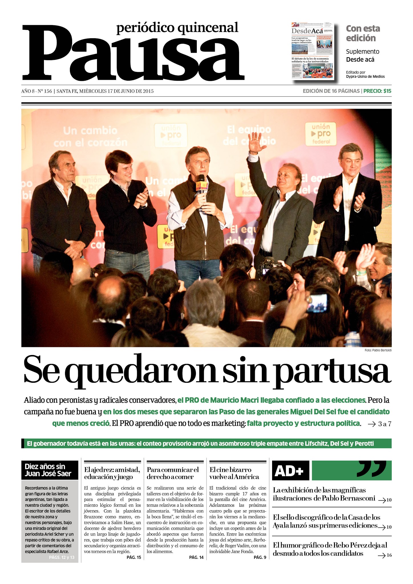 En la edición 156 del periódico quincenal Pausa, del miércoles