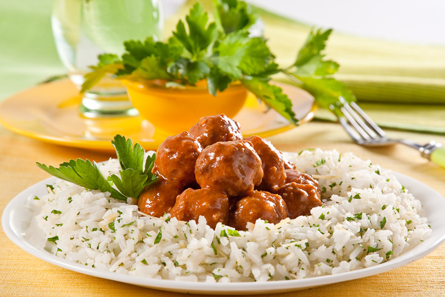 dirige a la cocina. Reúne trastos y alimentos y empieza a preparar arroz con