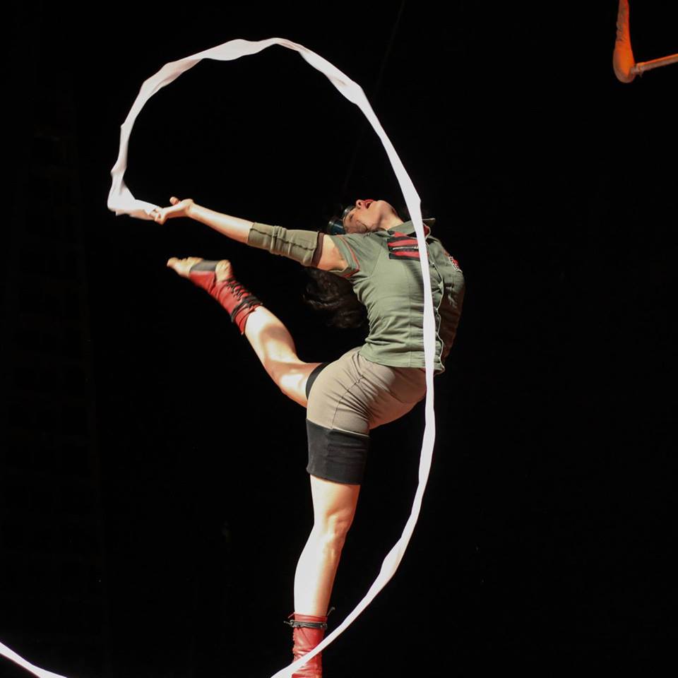 acrobacia aérea en tela. Las docentes y talleristas de El Birri Pía Bautista y