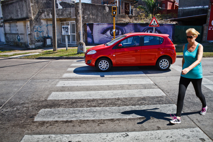 cruzar la calle antes que pase el auto, en vez de esperar arriba de la vereda?