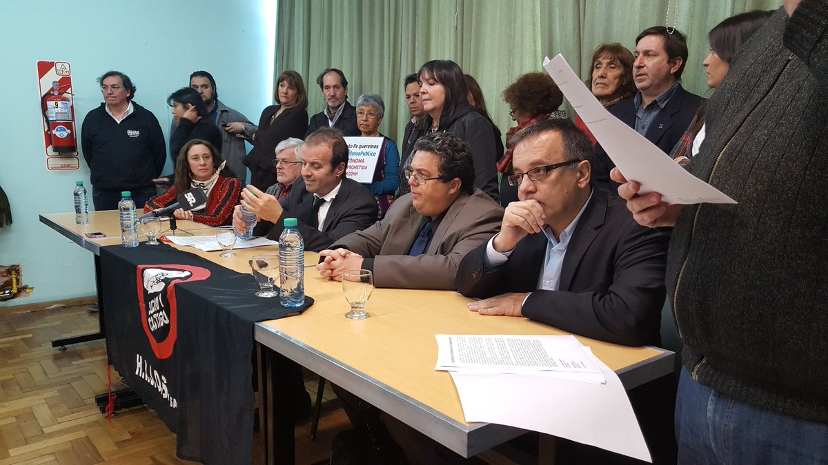 Junto a él, en el local de calle de San Luis, estaban sentados Lucila Puyol, del Foro contra la Impunidad y por la Justicia, Jorge Hoffmann, titular de ATE, el defensor regional de la primera circunscripción Sebastián Amadeo y el titular de de la cátedra de Criminología de la Universidad Nacional de Rosario, Enrique Font. Una centena de personas se sumaban, entre ellas dirigentes gremiales y el pleno de los trabajadores del Servicio Público Provincial de la Defensa Penal, quienes tomaron posición propia sobre el pedido de destitución: “es un intento de disciplinamiento no sólo de este funcionario, sino de todos sus dependientes, y de quien asuma este cargo en un futuro”.