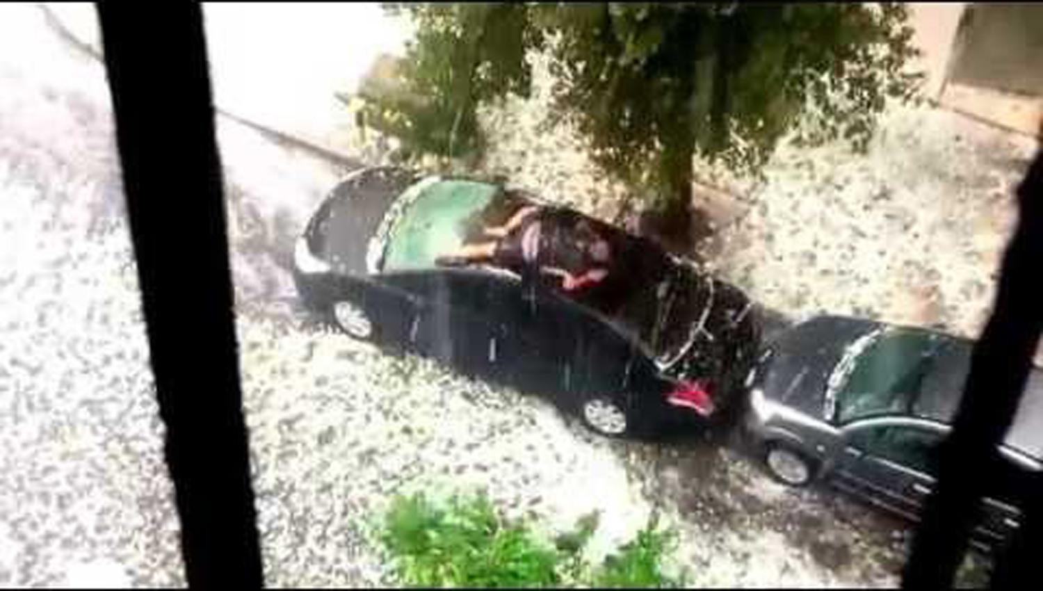 Hace tres años, desde una ventana filmaron a un señor de Mar del Plata nadando como una ranita sobre el techo de su auto, desesperado para cubrirlo de un granizo de aquellos. En el video original el ruido de los golpes de las rocas de hielo da dolor nomás de pensar en la espalda y la carrocería del coche. Pero en la versión extendida que aquí presentamos, el suave acompañamiento musical nos deja una bucólica metáfora de absorbente ritmo cinematográfico, resultante de las aproximaciones y las involuntarias pero sugerentes pérdidas del foco.