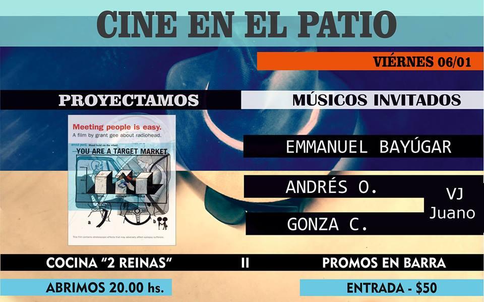 En el patio de la casa, se proyectará "Meeting People Is Easy", un film de Greg Gee acerca de Radiohead; la música la pondrán Emmanuel Bayúgar, Andrés Olivo y Gonza Castelo, y los visuales estarán a cargo de Vj Juano (Juan Pablo Bagnarol).