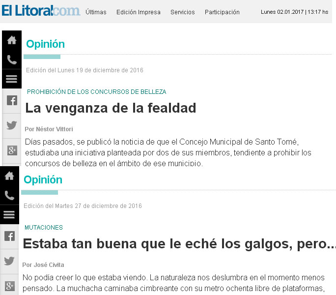Se supone que los Vittori tienen pluma y tradición periodística. Al menos uno de ellos. Las notas referidas no pasarían un examen de facultad, hasta para llegar a ser racistas tienen defectos (refieren a la dotación genética de la "mujer occidental", como si tal cosa existiera). Tampoco zafa una tercera en la serie: "El prohibicionismo", publicada por Néstor Vittori recientemente. En su descargo, los periodistas de El Litoral señalan cómo es el planteo de las cuestiones de género en dichas piezas: "Los textos abordan el tema desde paradigmas que ya han sido ampliamente superados y reproducen estereotipos que contribuyen a fomentar el caldo de cultivo de la violencia machista de una manera irresponsable, en una sociedad en la que cada treinta horas muere una mujer por causas relacionadas con la violencia de género".