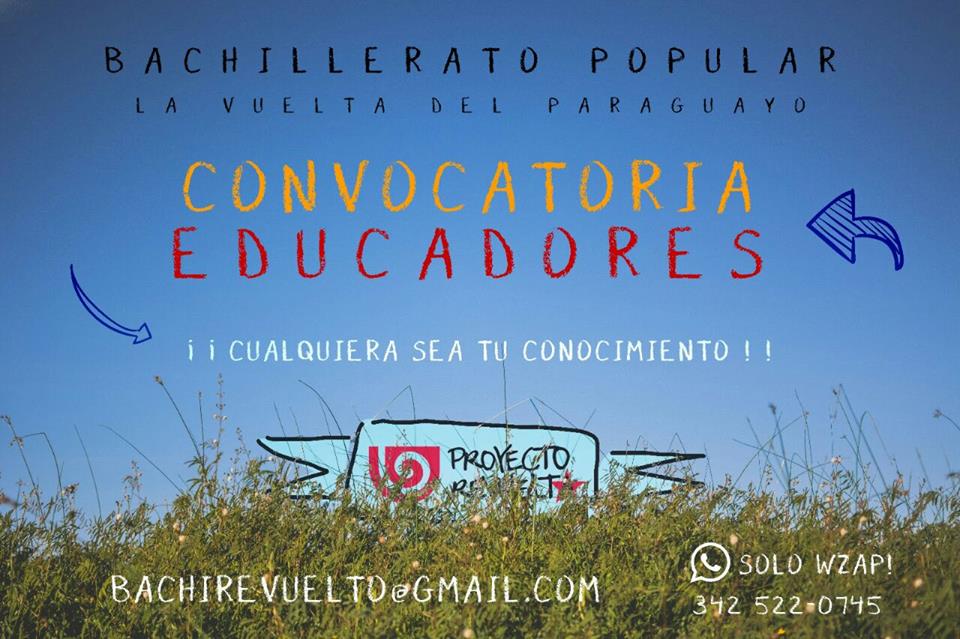 El bachillerato popular que funciona en La Vuelta del Paraguayo, y que ya va a comenzar su tercer año, se encuentra buscando educadores, con diversos tipos de conocimientos, que deseen sumarse al proyecto.