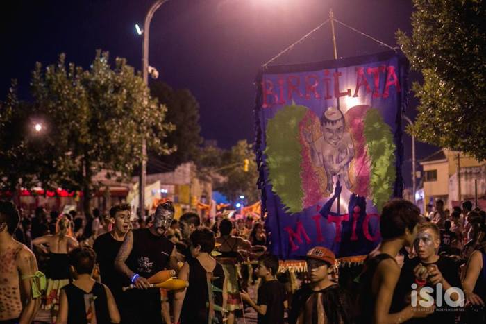 Enfrentado a todos, Lázaro: “yo soy, digamos, el director con repique, tiro los cortes que nos va diciendo el profe Juan Venturini y acá al lado mi amigo Franco dirige las casetas. Tengo 14”. En la esquina de San José y General López una destreza llama a la otra: además de la batucada, ya estaba el cuerpo de baile haciendo lo suyo a un costado; unas cinco nenas ya saben usar los aros de ula sin mirar, alrededor de una botella verde de porrón; unos pibes de no más de 15 años tiran vueltas en el aire con siete pasos de carrera, también hay malabares, danza con cintas flúor.
