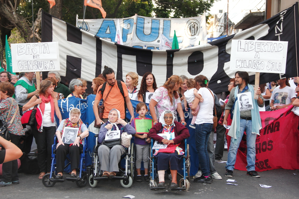 Pero marcho también porque las políticas de derechos humanos denigran no solo la memoria por los crímenes de la represión ilegal. Son políticas que atentan violentamente contra los derechos conquistados por las históricas minorías: mujeres, aborígenes, el movimiento LGTB, etc. Por ejemplo, se intentó reducir el presupuesto destinado al Consejo Nacional de la Mujer; se están cerrando las oficinas del INADI en diferentes ciudades del país; Milagro Sala sigue criminalizada y presa; y ni hablar de todas las políticas económicas que empobrecen a los pobres y enriquecen a los ricos desde que asumió la actual gestión de gobierno.