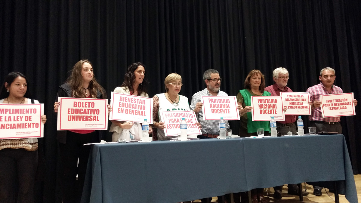 El reclamo principal es por la apertura de la paritaria nacional docente, algo a lo que se ha negado –hasta el momento– el ministro de Educación de la Nación Esteban Bullrich. “Esto se enmarca en la intención de desfinanciar y desmembrar la totalidad del sistema público de educación, ciencia y tecnología con una perspectiva de soberanía nacional para restaurar así las políticas neoliberales de los 90”, señaló Testoni.