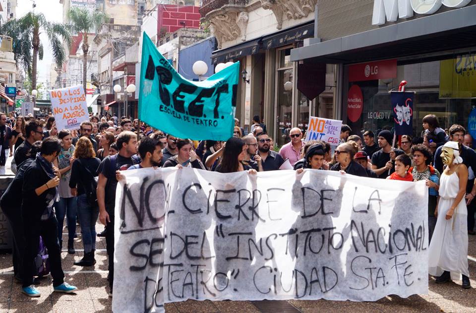 El año pasado los artistas escénicos santafesinos salieron a la calle para enfrentar a las autoridades nacionales del INT, quienes pretendían cerrar la delegación de nuestra ciudad. El ajuste pudo detenerse, se obtuvieron promesas de futuras soluciones, la Municipalidad se hizo cargo de la oficina y la actividad siguió su curso. Sin embargo, pasó un año entero y todavía el INT no confirmó de ningún modo la continuidad de la oficina local (y de su responsable), cuya existencia es vital para la actividad teatral de la zona. Por ello, se lanzó una petición en change.org bajo la consigna No al cierre de la Delegacion Santa fe del INT.