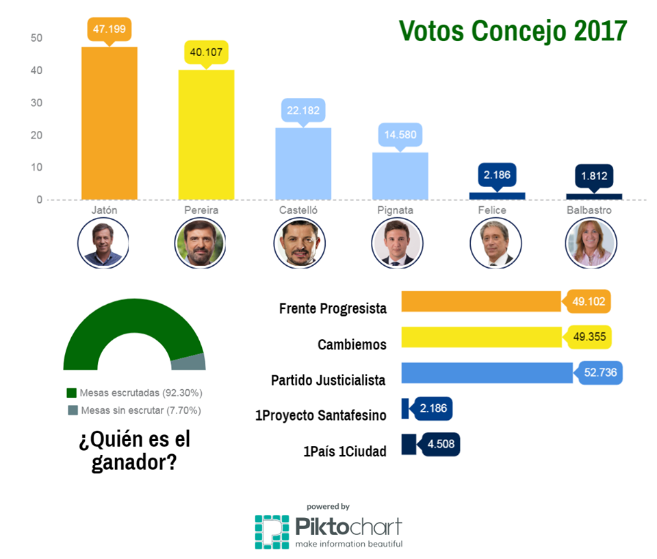 Los resultados de las elecciones Paso para concejales en Santa Fe se dividieron en tres tercios, si se considera la performance de los principales frentes partidarios. En cuanto a los candidatos, Emilio Jatón (Frente Progresista) fue el más votado, aunque seguido muy de cerca por Carlos Pereira (Cambiemos). A su vez, Marcos Castelló –vencedor de la interna del PJ– quedó en una posición expectante.