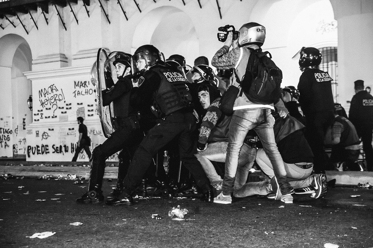 -En ese momento uno cree que está haciendo fotos tremendas, después cuando las bajas vez que la mitad te salió movida o no se ve lo que querías. Pero pensando en función de describir lo terrible de ese momento, donde la policía estaba como perros sueltos, hay imágenes que de calidad por ahí no son tan buenas pero que describen muy claramente el accionar: policías con Itakas apuntando directo a las cámaras, apuntando a la gente. Esa sensación, que la viví en carne propia, al verla en mi compu a las 4 de la mañana fue como fuerte, te das cuenta que todo eso fue real y hay que mostrarlo.