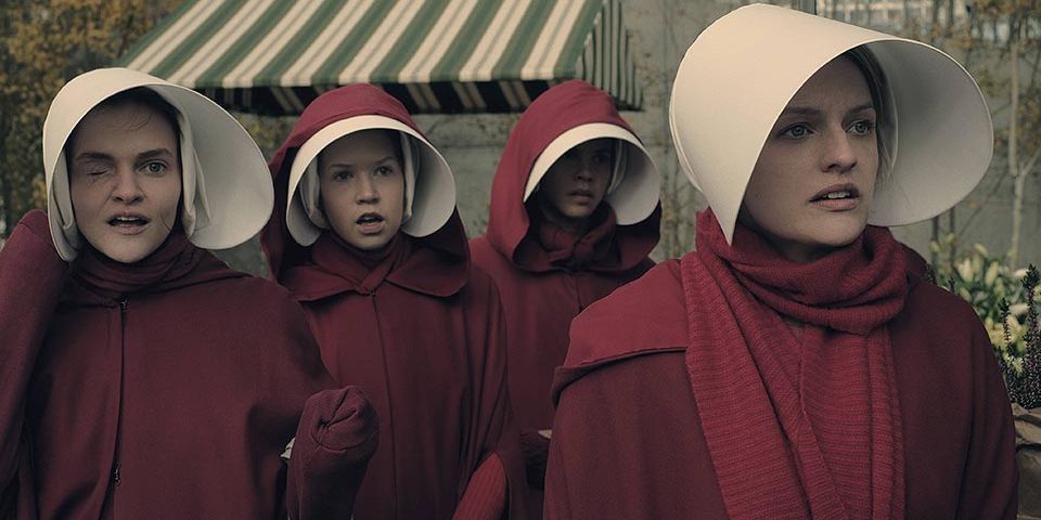 The Handmaid's Tale es una historia distópica en la cual, debido al colapso de la tasa de natalidad del mundo como resultado de las enfermedades y la contaminación ambiental, las pocas mujeres fértiles que quedan son entrenadas, corregidas y educadas para luego asignarlas a los hogares de los altos gobernantes, donde son sometidas a una violación ritualizada por sus amos hombres para quedar embarazada y darles hijos a ellos y a sus esposas.