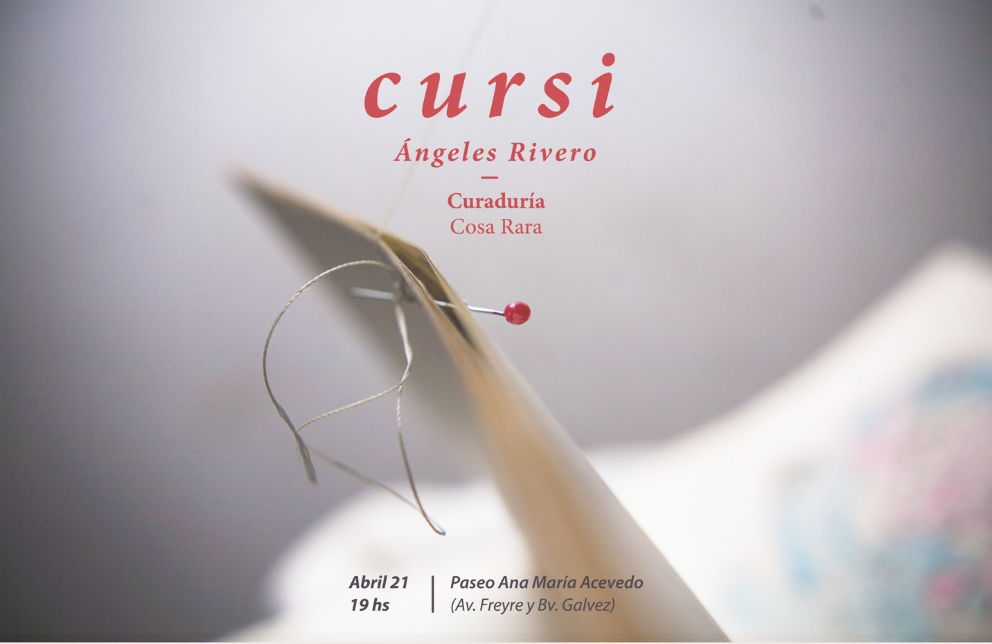 En la primera exposición se presentará la instalación “Cursi”, a cargo de Ángeles Rivero (de Corrientes) curada por Cosa Rara (Alejandra Astorga, de Mendoza). La cita es el sábado a las 19 en el Paseo Ana María Acevedo (Av. Freyre y Bv. Pellegrini), al costado del Hospital Iturraspe.