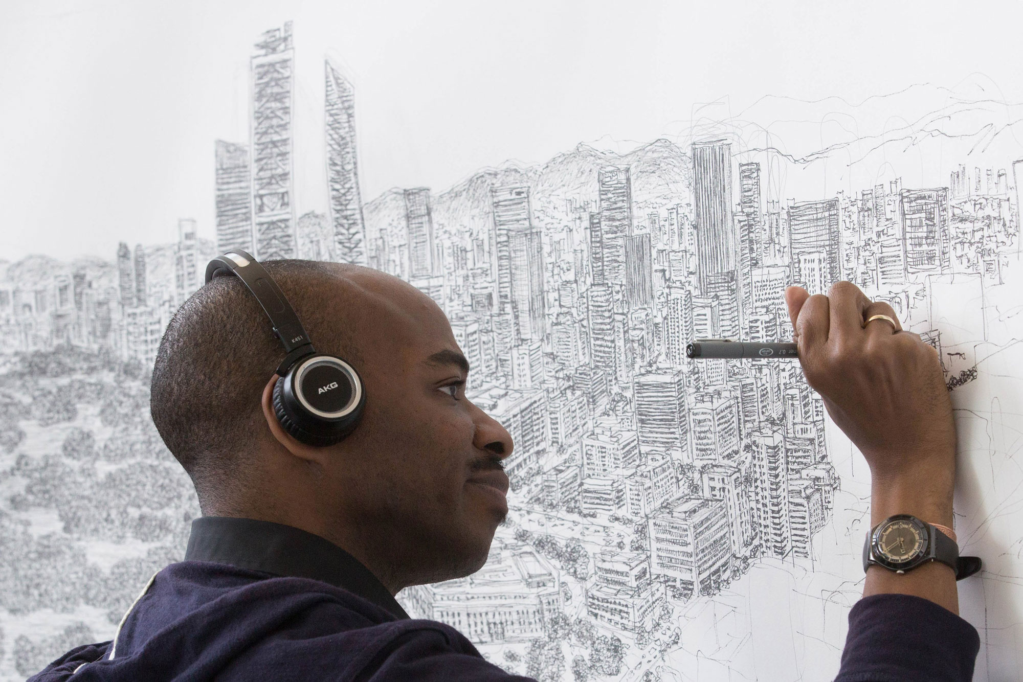 Londres, Manhattan, Madrid, París y hasta Río de Janeiro fueron dibujadas por su rotulador Staedtler después de memorizarlas durante paseos algunos minutos en helicóptero.