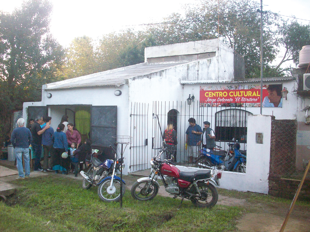En San Agustín no hay ni alumbrado público. Cuando cae la noche y la murga cesa con su repiqueteo, en todas las casas se prenden foquitos en las puertas, formando hileras de luces que marcan los senderos de las calles de tierra. La mole del Mercado de Abasto preside la zona, más gigante por inactiva y silenciosa. Es domingo y, a pocas cuadras, se está festejando el segundo aniversario del Centro Cultural. Hay una muestra de fotos del barrio y Los Pibes de Villa Oculta le dan sin freno a la percusión mientras esperan la combi para volver a casa. Dentro de la casa, el Negro Kitiki Quintero oficia de maestro de ceremonias y va dando el pase a las diferentes actividades y muestras teatrales. El día está terminando y en una mesa, en el comedor, se sirven buenas empanadas y vino. Artistas, vecinos y la familia de Jorge disfrutan del final de la jornada. El aniversario del Centro Cultural coincide con el cumpleaños del titiritero. La casa está viva.