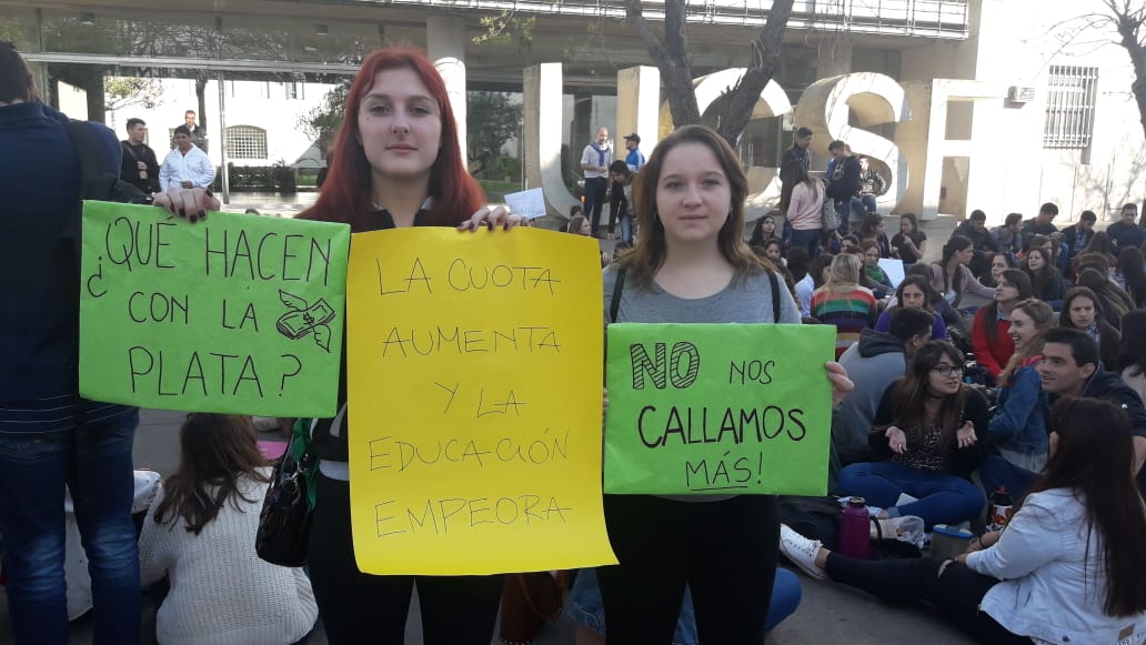 Ayer, después de la asamblea en la que se decidió la sentada, el presidente del Centro de Humanidades, Agustín Nicollier, reconoció al móvil de radio Sol que "No estamos recibiendo una educación acorde a la cuota que estamos poniendo". "Muchos chicos hoy están dejando por el costo de la cuota. Imaginate en octubre con los aumentos. La excusa desde arriba fue que contemplemos la situación de Argentina, que las cosas suben. Pero los sueldos de los estudiantes que trabajan para pagarse la Universidad no suben lo mismo que la cuota, lo mismo que los sueldos de los padres o madres que se rompen para bancar a sus hijos", explicó.
