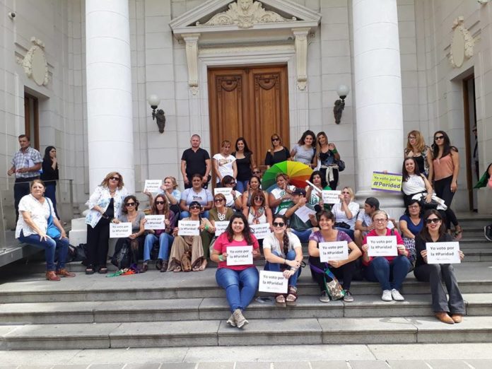Previendo esta situación, representantes de la Mesa Mujeres por la Paridad se movilizaron hacia la Legislatura para exigir el tratamiento del proyecto, que obtuvo la media sanción de Diputados el 24 de mayo y que durante seis meses los senadores no lograron los acuerdos necesarios para convertirla en ley.