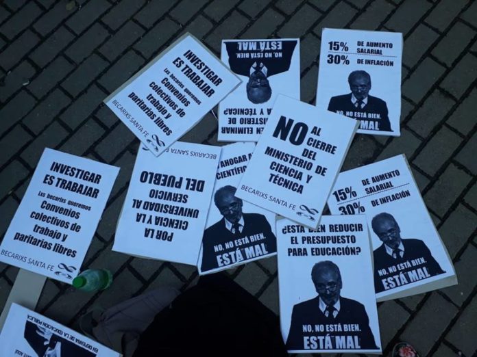 En estos tres años el CONICET ha sufrido un profundo y sostenido deterioro de los salarios de sus trabajadoras y trabajadores y de los estipendios de sus becarias y becarios, muchos de los cuales viven con remuneraciones que se sitúan por debajo de la línea de pobreza. A esto se suman la conocida disminución del número de ingresos a las Carreras del Investigador Científico, las serias dificultades para efectivizar en tiempo y forma los ingresos a la Carrera del Personal de Apoyo y la imposibilidad de renovar los cargos del plantel técnico-administrativo que constantemente se pierden, en muchos casos por causa de los bajos salarios.