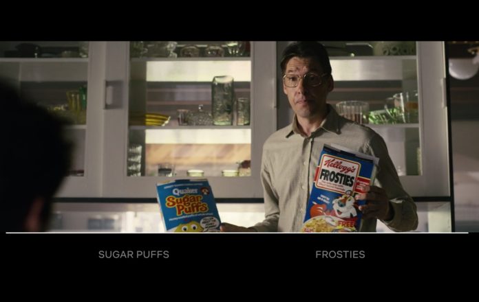 Lo sorprendente (o “la primera sorpresa”, me guardo las siguientes para evitar spoilers) es que en el desayuno, el padre le da a elegir entre dos tipos de cereales y en la parte de abajo de la pantalla, aparecen las dos opciones para que uno, el “televidente”, elija. Lo hace, pensando: “Bah, qué decisión más trivial” y la película sigue. Pero después de otra decisión trivial, se encuentra con una que sí desestabiliza la historia. El protagonista ha presentado el juego en una empresa y le ofrecen desarrollarlo ahí: ¿acepta o rechaza?