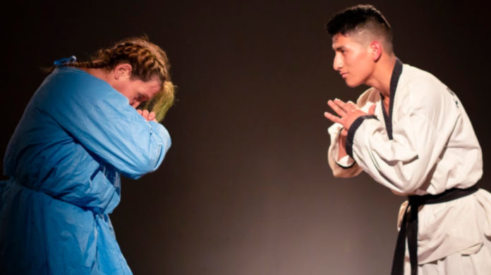 “La Karateca” es un biodrama: una obra de teatro basada en una biografía sobre la vida de Viviana González e interpretada por ella. Viviana es una mujer trans que en los 90 representó a la Argentina peleando para el seleccionado en artes marciales mixtas y fue cinco veces campeona consecutiva en categoría masculina antes de retirarse, a los 30 años.