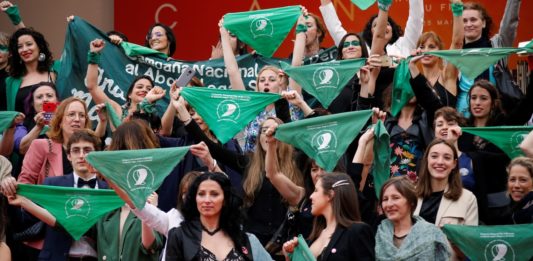Pañuelazo verde en Cannes durante el estreno de "Que sea ley"