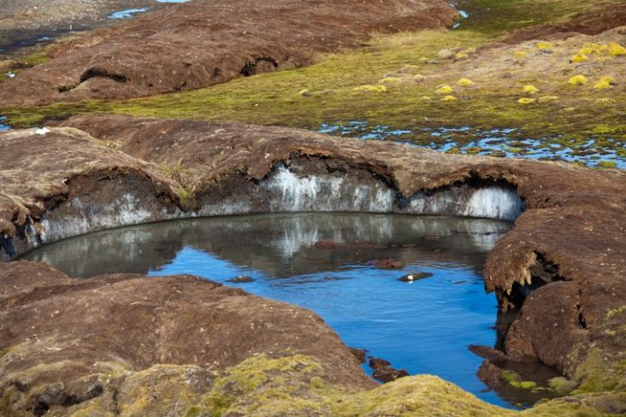El derretimiento del permafrost genera el crecimiento del termokarst, que es lo que queda: tundra con charcos de agua helada, donde vegetación nunca antes vista en el lugar está apareciendo. El problema complementario –y crucial– es que el deshielo deja expuesto material biológico a la atmósfera, cuya descomposición genera aún más carbono, el gas clave en la generación del calentamiento global.