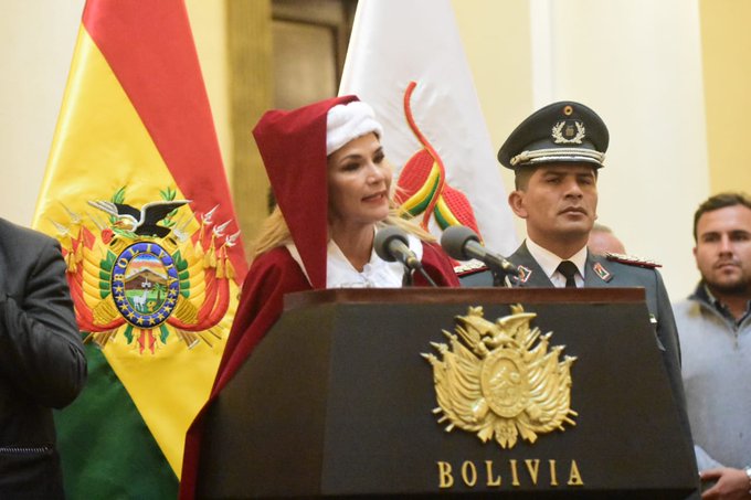Mientras la presidenta de facto hace un saludo navideño vestida de "Mamá Noel", su gobierno emitió una orden de detención contra el presidente depuesto Evo Morales, asilado en Argentina desde el 14 de diciembre.
