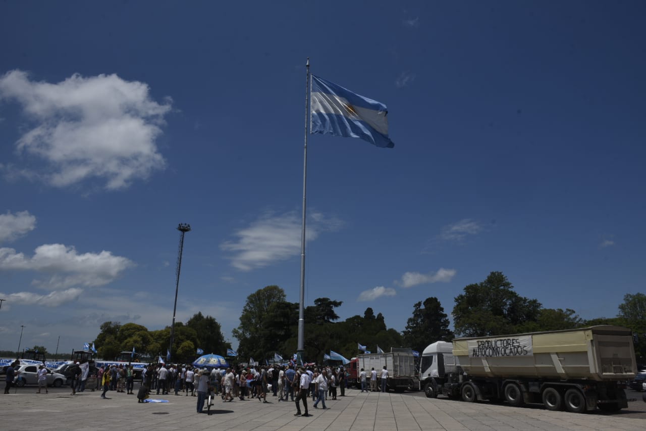 Sobre avenida Belgrano, frente al Monumento, se estacionaron unos 30 tractores llegados de distintas zonas cercanas a Rosario. También hubo algunos pocos camiones y un centenar de camionetas de alta gama.