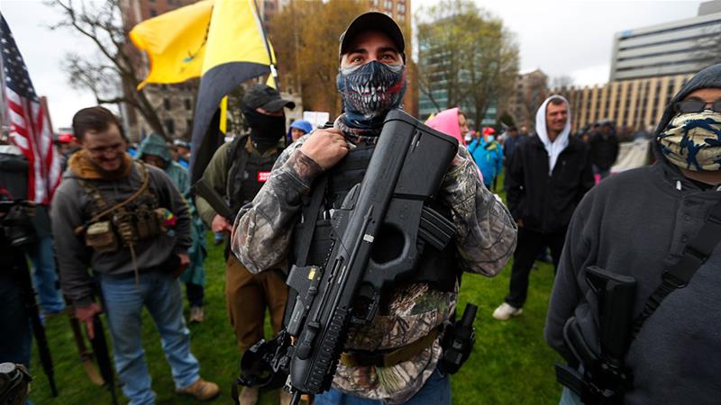 La política suicida de vuelta a la normalidad se da en el marco de las repetidas arengas del inverosímil presidente de Estados Unidos, otro gag de Los Simpson que se hizo realidad. Donald Trump no perdió ocasión para pedir la vuelta a la normalidad en su país. Sus seguidores interpretaron entonces que debían salir a protestar en favor de su presidente, portando sus ametralladoras. Nada mejor para hacerlo que amenazar una institución democrática. Eso pasó el jueves 30 de abril, cuando centenares de paletos disfrazados de milicos se allegaron con su ferretería de última generación a la Legislatura de Michigan para pedir el fin de la cuarentena.