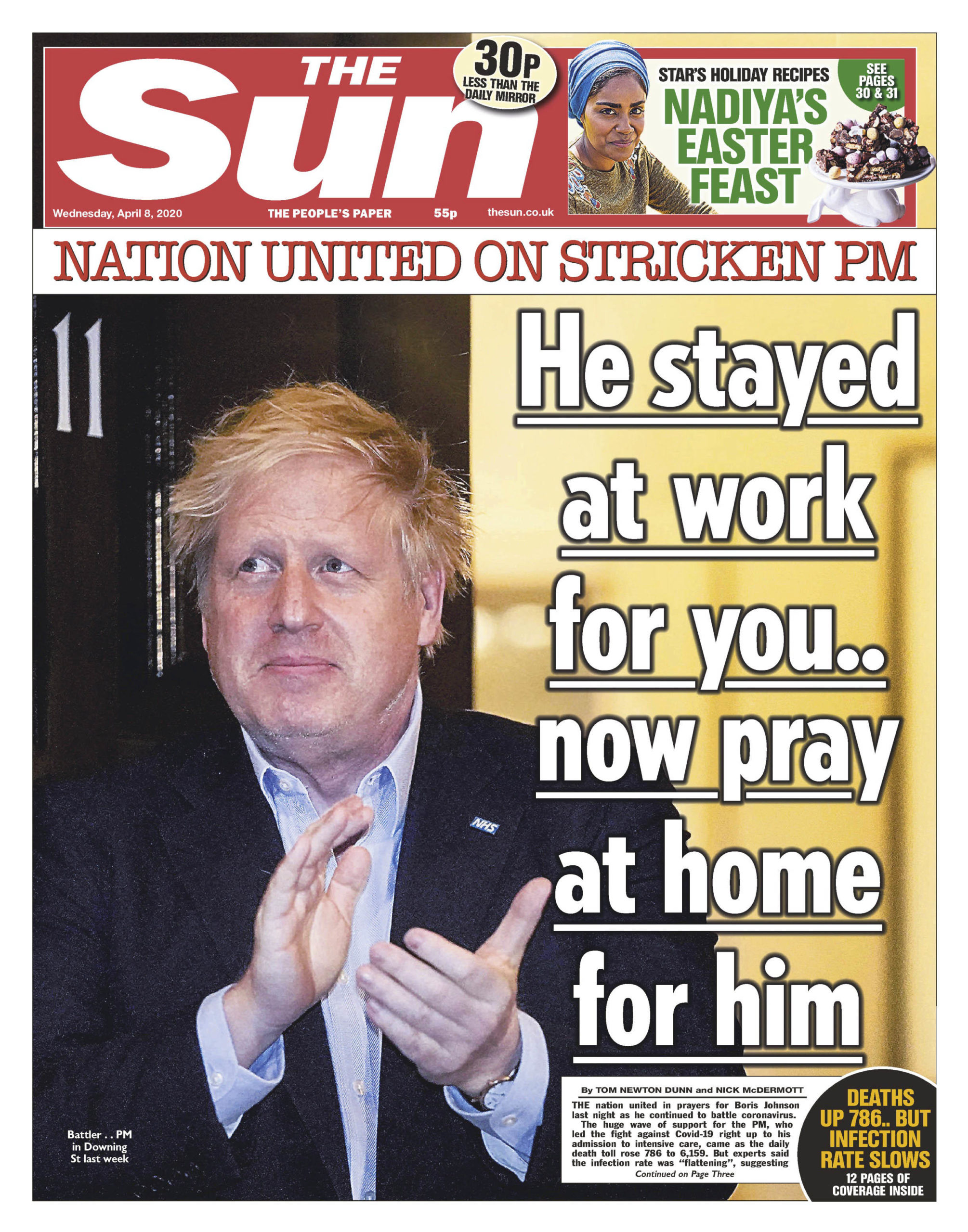 En el completo otro extremo del periodismo inglés, los inefables de The Sun, también los mejores en lo suyo, alzan su plegaria por Boris Johnson, el principal líder mundial que enfermó por el coronavirus. La foto, malísima. El título subrayado, horrible. El resultado, genial.