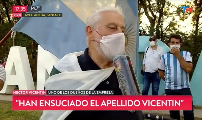 Cara visible de la empresa Vicentín en el banderazo del sábado en Avellaneda, Héctor Vicentín es uno más de los accionistas que se presentaron en la convocatoria de acreedores. Él y su núcleo familiar le quieren sacar casi cinco millones de pesos a la empresa que ellos mismos vaciaron.