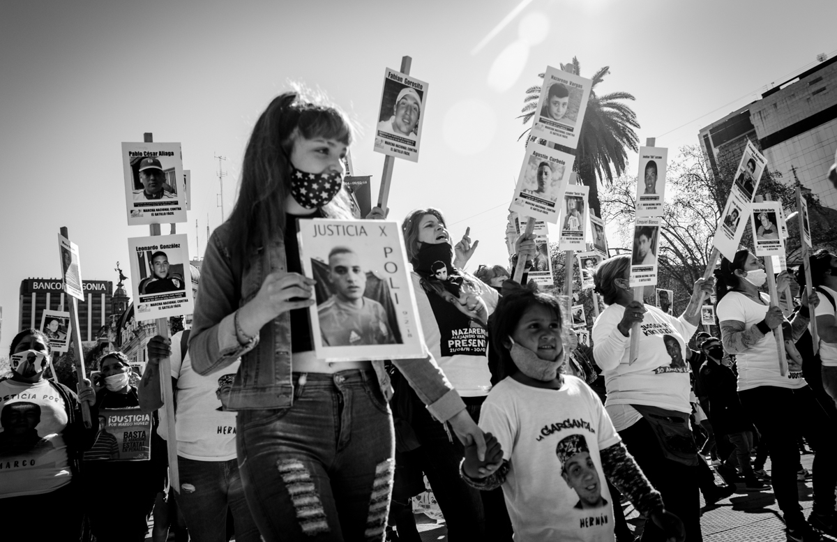 Estamos acá, en Plaza de Mayo, en la 6° Marcha Nacional contra el gatillo fácil y la represión estatal, llevando adelante esta enorme jornada de lucha a nivel nacional que visibiliza, repudia y denuncia la represión que ejerce históricamente el Estado contra nuestros hijos, hijas, hermanos, hermanas, padres, madres y familiares, porque el tapabocas nos cuida, pero jamás callará ese grito de bronca, dolor, Amor y resistencia.