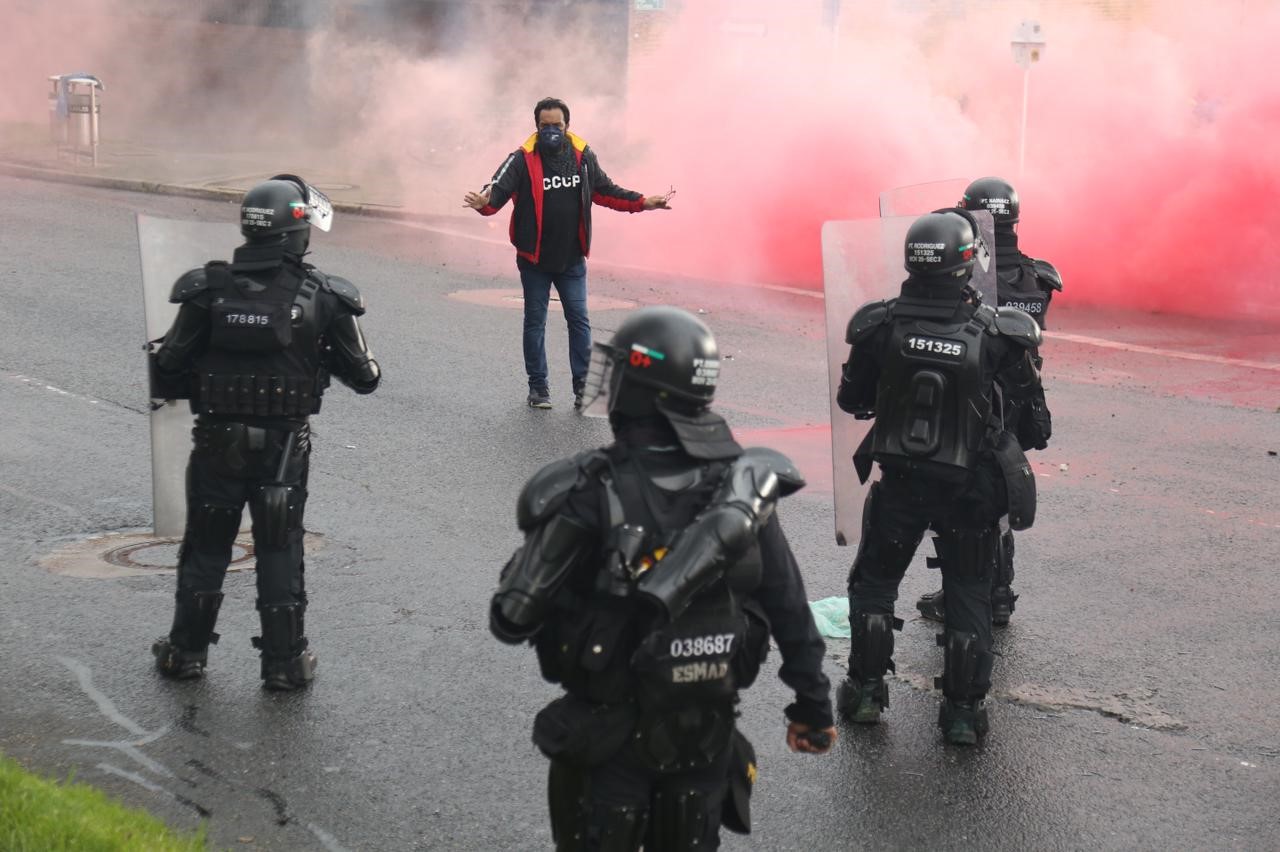 Frente al derecho legítimo de la protesta y la movilización social, comenzaron a circular algunos discursos por parte del gobierno nacional afirmando que las marchas estaban siendo infiltradas por guerrillas urbanas como el Ejército de Liberación Nacional, ELN o grupos disidentes de las extintas FARC, que no se acogieron al Acuerdo de Paz de la Habana. Si bien en algunos lugares existió violencia sobre bienes públicos o privados, es decir, violencia sobre cosas como: bancos, buses de transporte masivo, supermercados de cadena, paredes, entre otros; la respuesta del Estado fue llevar a las calles las Fuerzas de seguridad. El incremento de la indignación social se produjo cuando agentes del Estado, particularmente miembros de la policía nacional, comenzaron a ejercer violencia institucional sobre muchos manifestantes.