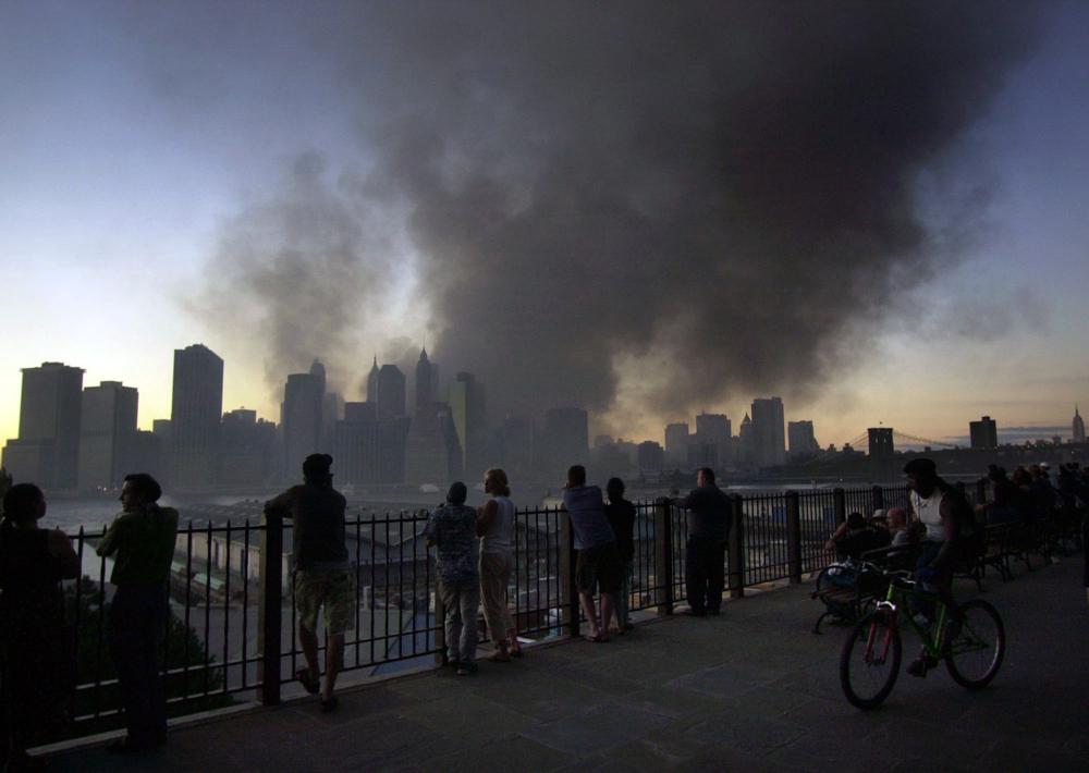 Finalmente, cuando cae la noche, la gente mira fijamente el humo a través del puerto de Nueva York, tratando de entender lo que sucedió frente a sus ojos.