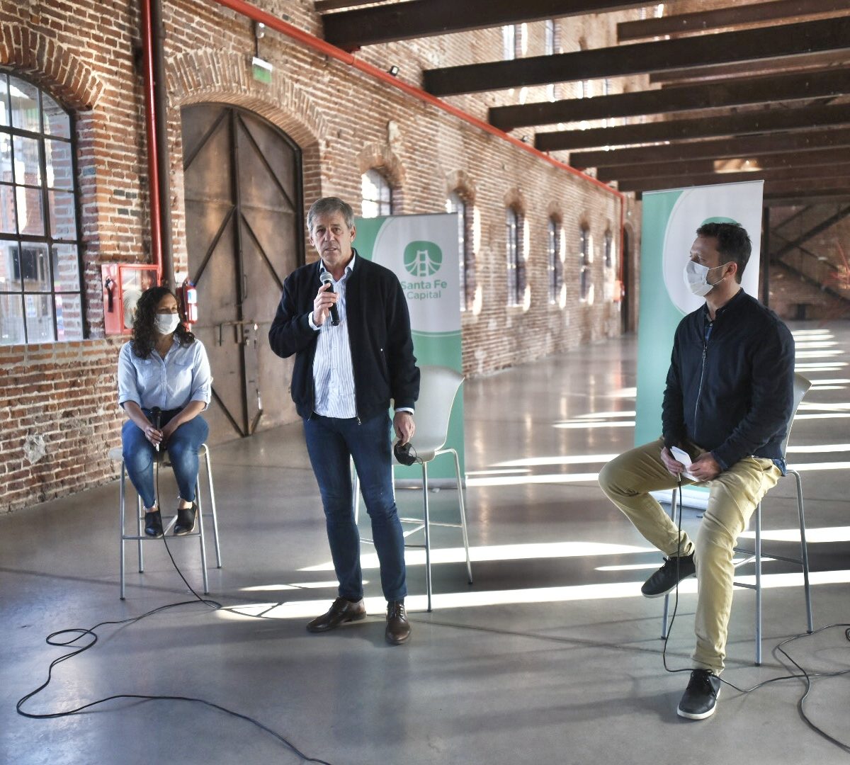 En el hall del Liceo Municipal (ex Molino Marconetti), el intendente Emilio Jatón, junto a la concejala Laura Mondino, y al secretario de Desarrollo Urbano, Javier Mendiondo, brindaron una conferencia sobre los Códigos de Habitabilidad y de Patrimonio, aprobados este martes en el Concejo santafesino a instancias de un proyecto del Ejecutivo municipal.