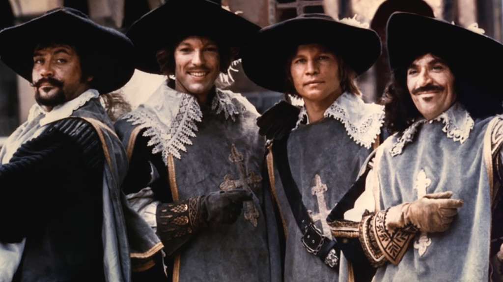 En 1974 Richard Lester presenta la segunda parte de su película dedicada a la obra de Dumas, Los cuatro Mosqueteros. Y decimos que es una única película porque Lester filmó todo de un tirón –todos pensaban que se estaba rodando un solo film- y luego la dividió en dos partes, lo que le valió un juicio por parte de los protagonistas. Desde ese momento se establecen cláusulas especiales en los contratos para que se pague “por película”.