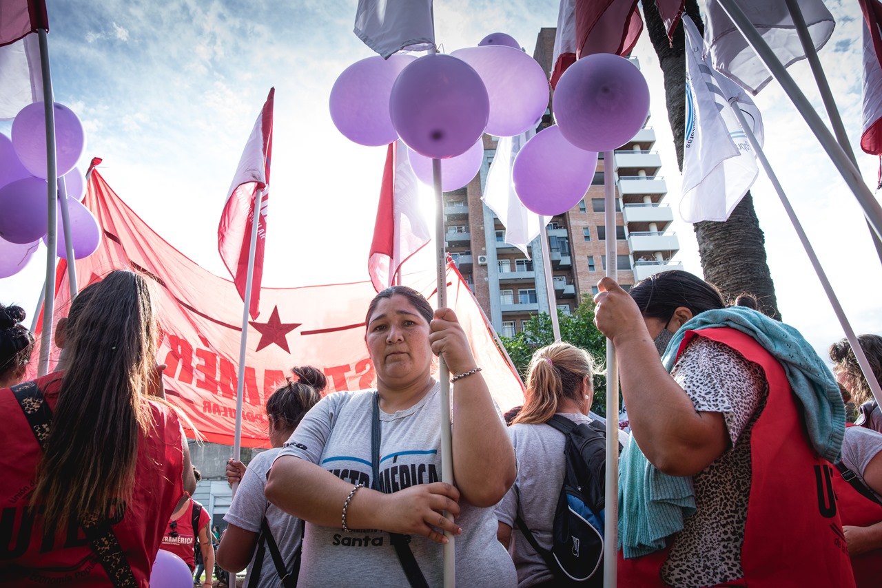 Una de ellas es Guadalupe, de Costa Azul, Santo Tomé, que marcha junto a La Poderosa. “Hoy en el comedor trabajan los hombres, nosotras venimos a pelear por el salario”, afirma. “Hoy trabajé igual, en casa, pero acá estoy, marchando por todas las que no están”, cuenta por su parte Romina, militante de Mujeres en lucha dentro de la Corriente Clasista y Combativa, en Villa del Parque.