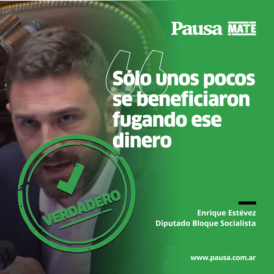 El diputado Enrique Estévez afirmó: "El pueblo no vio un peso de esa deuda puesta al servicio de sus necesidades, ni en rutas, ni en hospitales ni en escuelas. Sólo unos pocos se beneficiaron fugando ese dinero". Es verdadero.