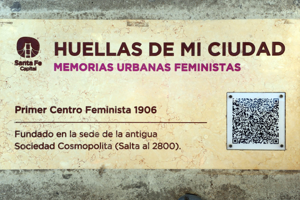 Se trata de la tercera baldosa colocada y está en Salta al 2800, donde se ubicó el Primer Centro Feminista de la ciudad, en el año 1906. Incluye un código QR a través del cual se puede acceder a la historia de ese espacio y sus integrantes.