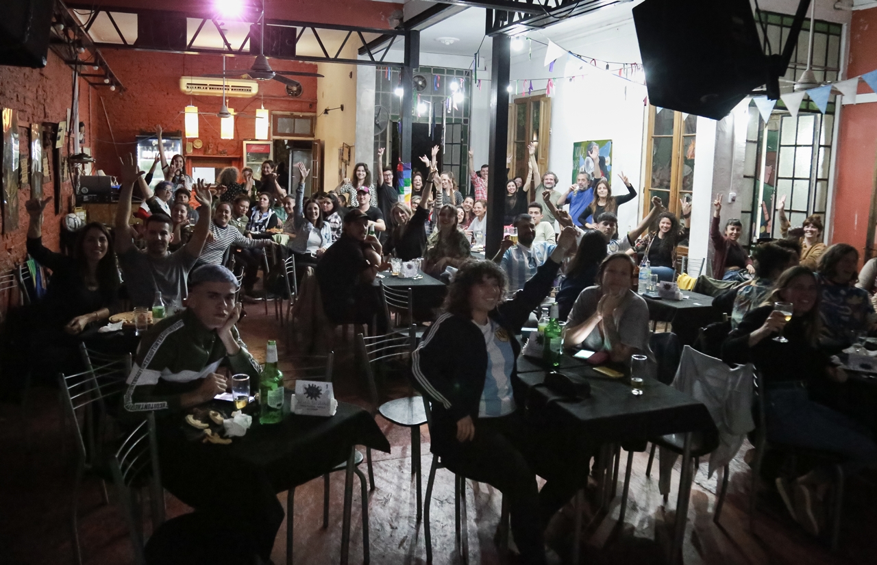 El sábado 9 de julio la Selección Argentina debutó en la Copa América que se disputa en Colombia. Enfrente estuvo al rival más difícil: Brasil, que ganó por cuatro goles. Desde La Diez se organizó la proyección del partido –que no se transmite por la TV Pública–, para poder ver y alentar a nuestras jugadoras. Fue una fiesta de gran concurrencia en el Solar de las Artes (9 de Julio 2955), con cerveza, picadas y pizza.